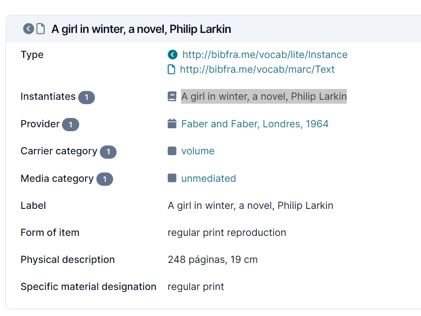 Example for the Instance Resource "A girl in winter, a novel, Philip Larkin":