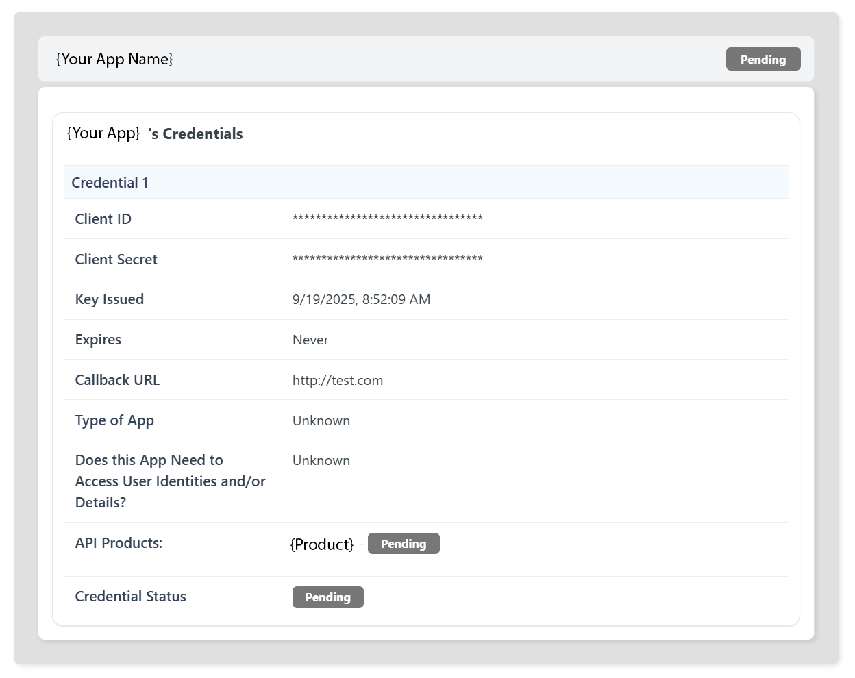 3. Click My Apps in the top navigation to see your new App listed. Your new App will be Pending until your information has been reviewed and approved. You will receive an email once your App has been Approved.